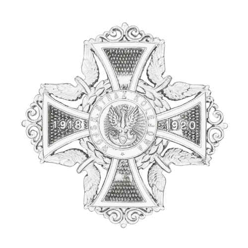 §3 – Odznaka o wymiarach 55x55mm, ma kształt krzyża kawalerskiego koloru granatowego, z białymi lamówkami, które to posiadają kontury koloru złotego. Na lewym ramieniu wypisano rok „1918”, natomiast na prawym „1920”. Na środku krzyża znajduje się koło koloru czerwonego, na którego środku znajduje się orzeł wojskowy i odchodzące od niego do obwodu koła jasnoczerwone promienie. Koło okala biały okrąg , na którym widnieje napis „Wojsk. Straż Kolejowa”, zaś okrąg ma kontury koloru złotego. Środek odznaki okala w krąg wieniec laurowy koloru złotego. Pomiędzy ramionami umieszczono srebrne symbole kolejnictwa – uskrzydloną oś kolejową, a zwieńczenia ramion ozdabiają złote ażurowe wykończenia.”